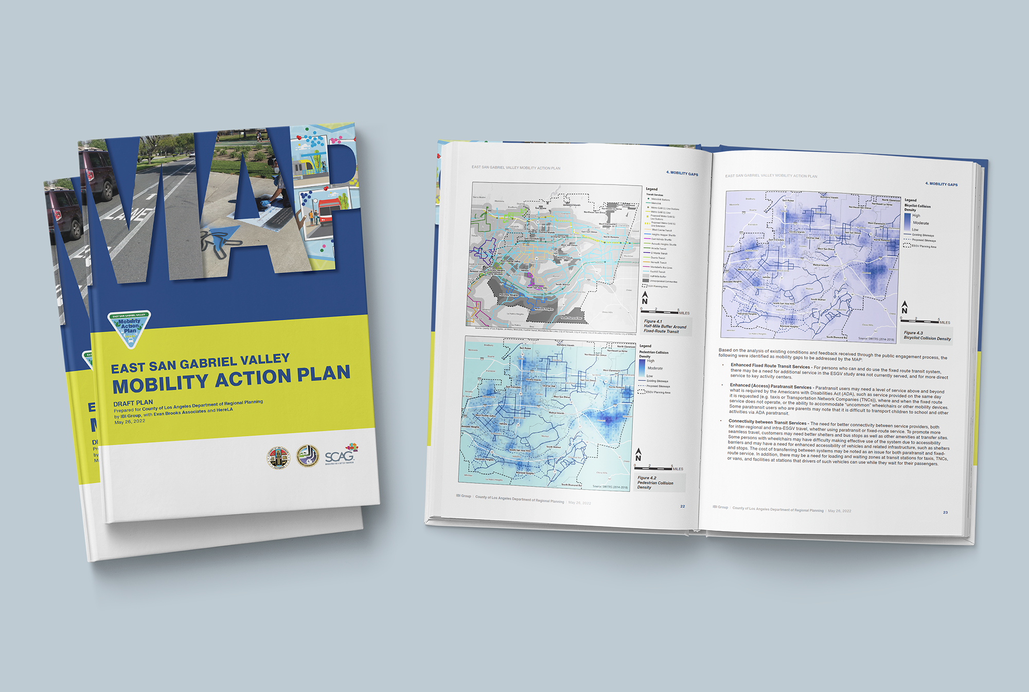 To provide a cohesive and implementable path forward for mobility throughout the County and local cities in the region, EBA partnered with IBI Group, Here LA, the County of Los Angeles, and SCAG to prepare the East San Gabriel Valley Mobility Action Plan. EBA was responsible for implementing an extensive and creative public engagement plan to understand concerns and challenges faced by community members and gather community input on proposed recommendations and solutions. Outreach involved a project steering committee, a youth-focused campaign, a digital foyer (i.e., online open house), social media, live pop-up events, bus card advertisements, eye-catching signs at strategic locations, postcards, and online workshops.
